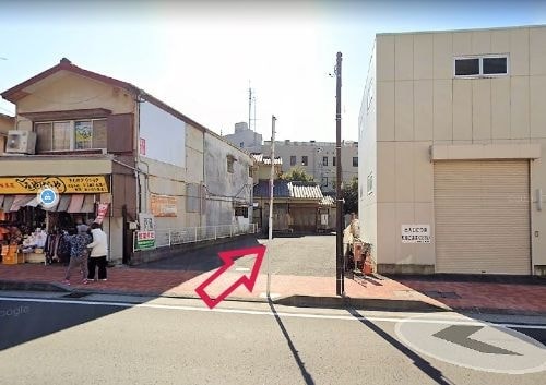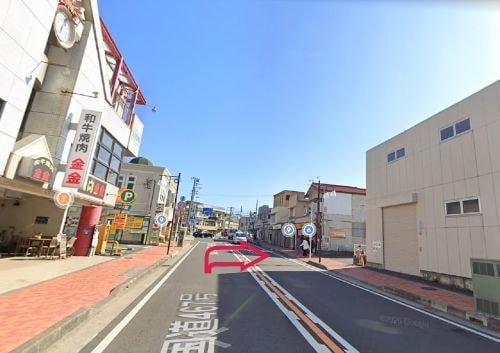 お店から鎌倉方面へ150mほど進み、左手の焼き肉屋さん正面あたりを右折。